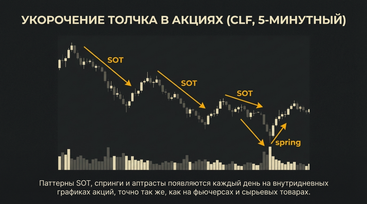 3. Точные входы: Помогает находить точки разворота с минимальным риском (Springs/Upthrusts) на истощении объема.