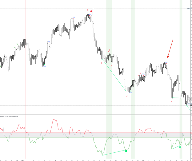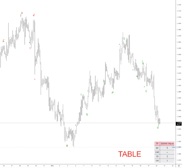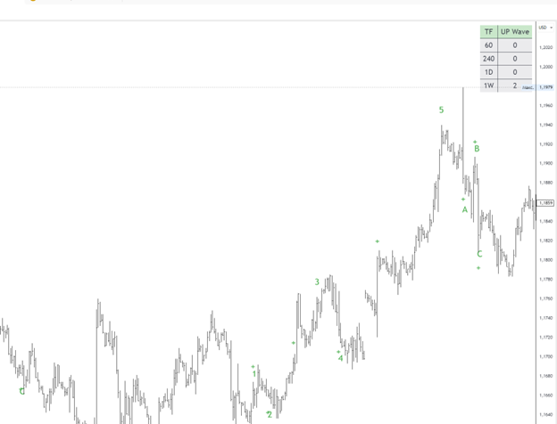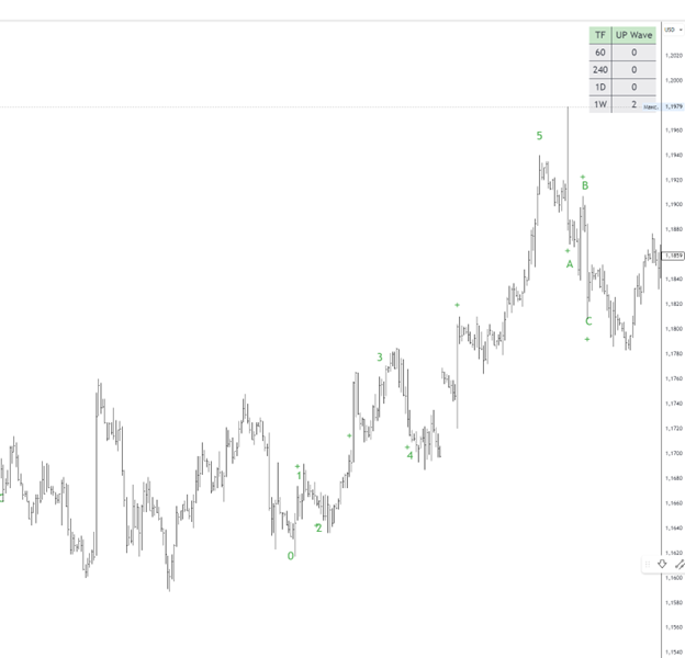 Например: на дневном ТФ идёт волна 3 UP, а на часовом — коррекция BDOWN.