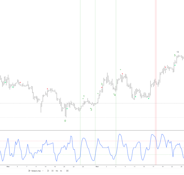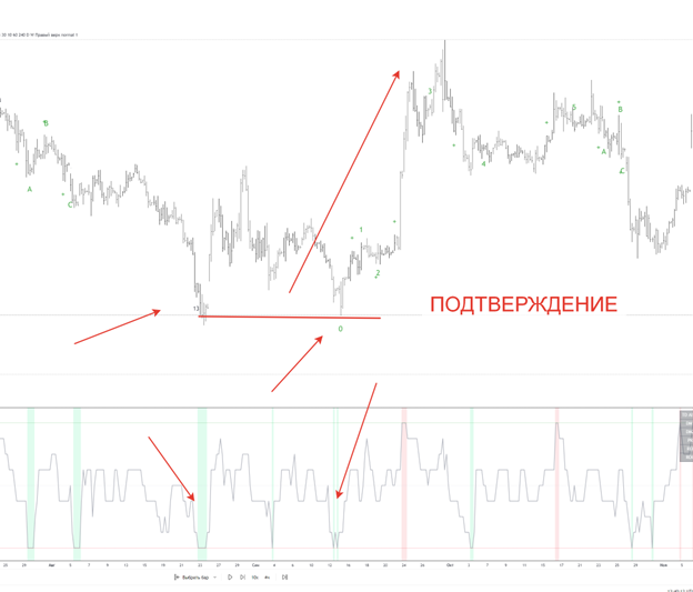 Если индикатор сбрасывает разметку и возвращается к состоянию поиска нового 0 — значит прежний сценарий не отработал, и рынок меняет структуру.