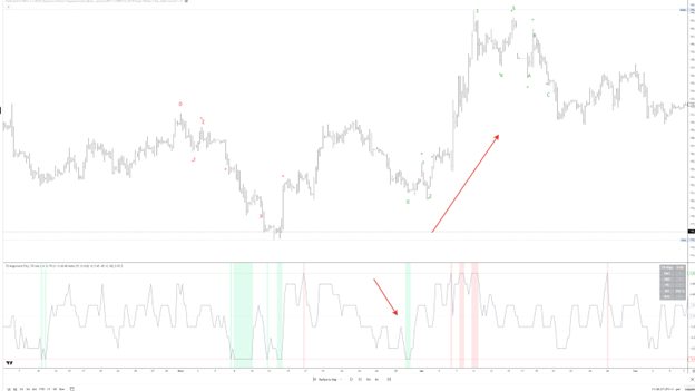 Сигнал осциллятора, паттерн PriceAction или уровень поддержки/сопротивления имеет больший вес, если совпадает с логикой волновой структуры (например, вход на покупки вблизи завершения C в бычьем сценарии).